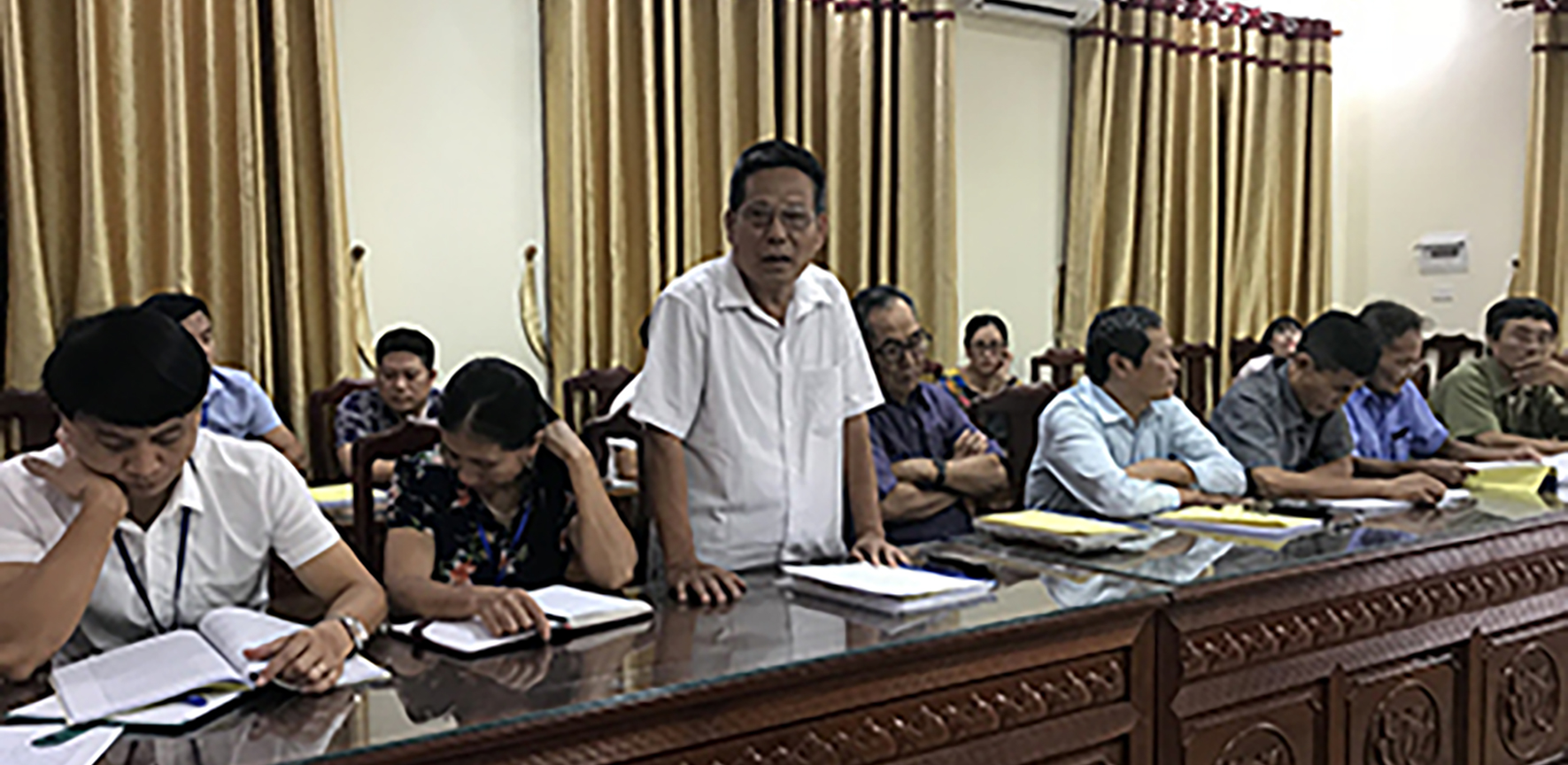 Đồng chí Nguyễn Bá Thời – nguyên Bt Đảng ủy xã tham luận về mặt bố cục và làm rõ một số nội dung, sự kiện kiên quan đến giai đoạn từ 1954 – 1995 từ cuốn sách xuất bản năm 1995