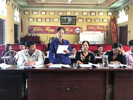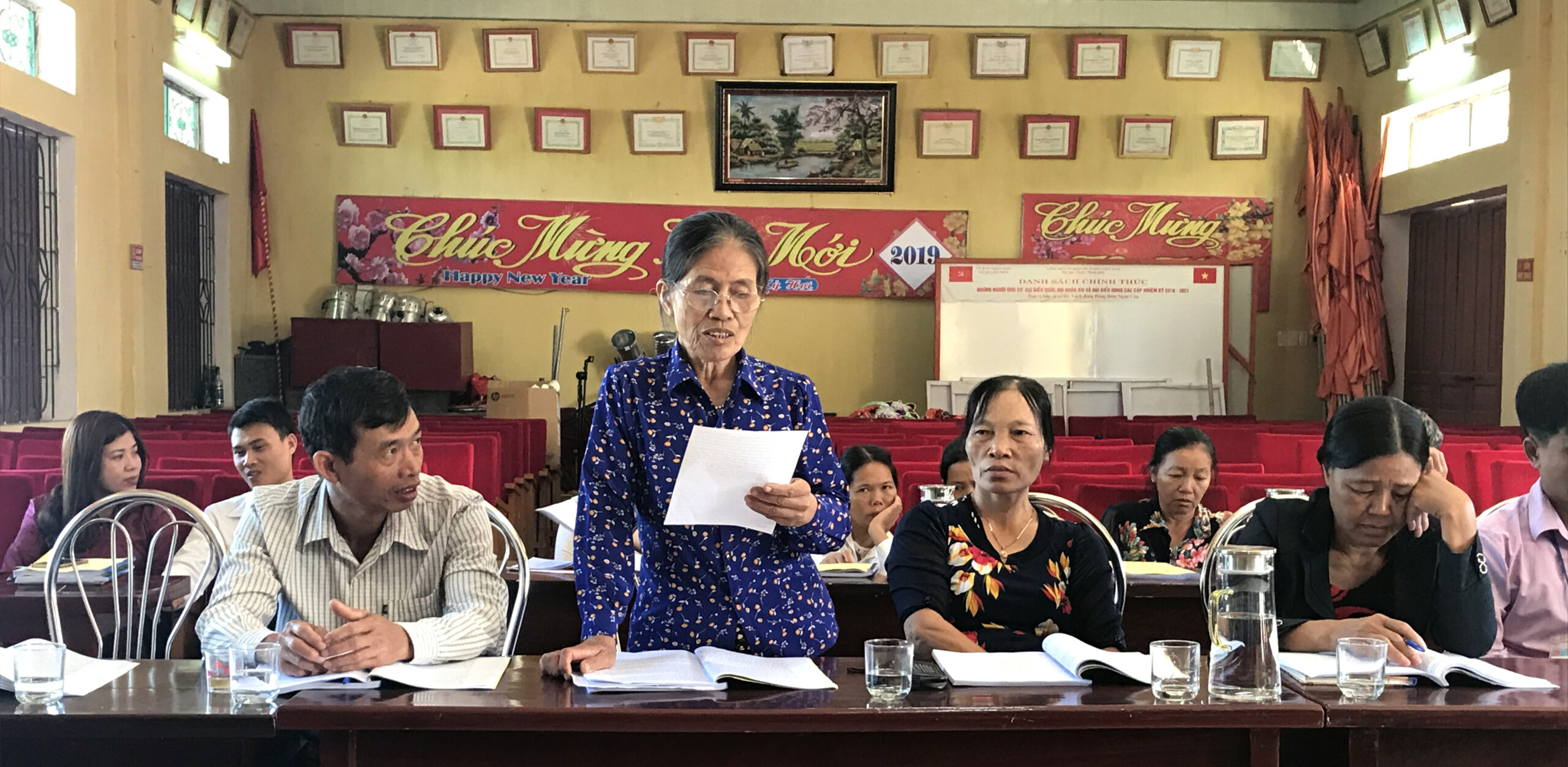 Đồng chí Bùi Thị Son – Bí thư chi bộ Ngân Cầu tham gia góp ý chương vùng đất con người xã Quyết Tiến