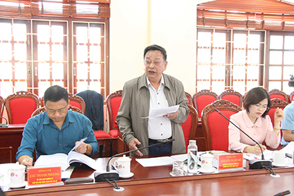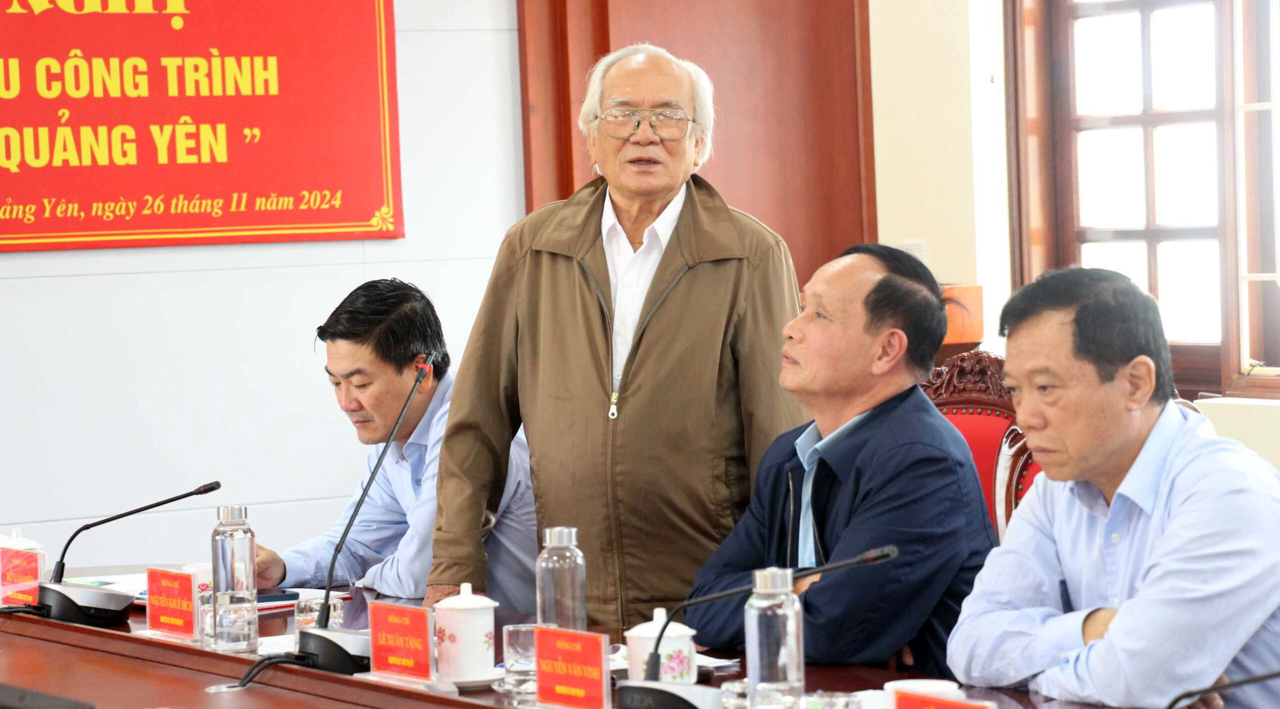 Đồng chí Nguyễn Khuê Bích – Nguyên Bí thư Huyện ủy Yên Hưng (Thị ủy Quảng Yên) tham gia ý kiến tại hội nghị