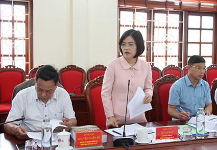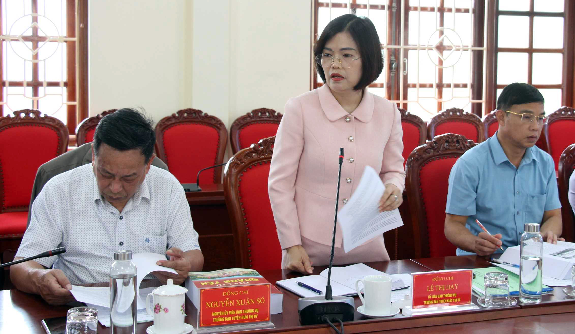 Đồng chí Lê Thị Hay – Trưởng Ban Tuyên giáo Thị ủy phát biểu tại hội nghị