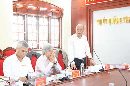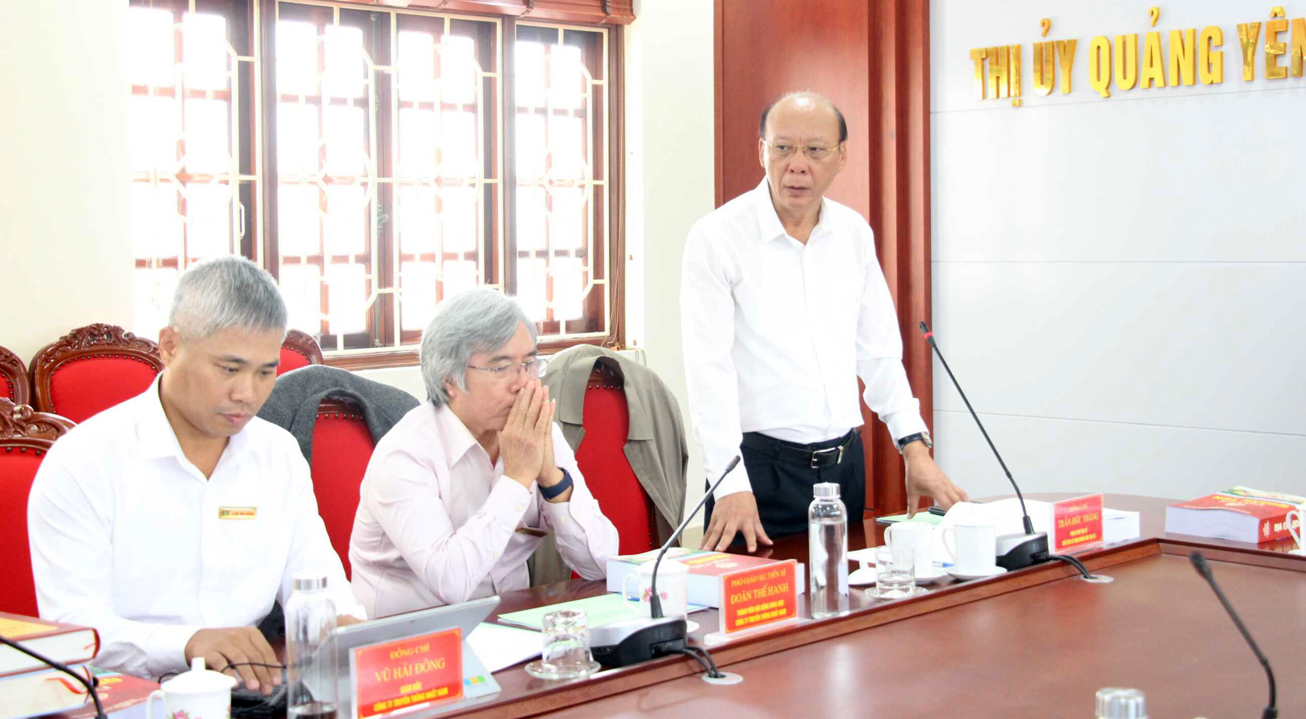 Phát biểu kết luận hội nghị, đồng chí Cao Ngọc Tuấn, Bí thư Thị ủy đánh giá cao tinh thần trách nhiệm của Ban chỉ đạo biên soạn và đơn vị tư vấn. Các ý kiến tham gia đánh giá khách quan, chuẩn xác trong việc nghiệm thu công trình, đồng thời thẳng thắn đóng góp thêm nhiều ý kiến giúp cho cuốn sách đạt chất lượng tốt nhất. Bản dự thảo đã đáp ứng được mục tiêu, nhiệm vụ, nội dung, bố cục khoa học, đã được Ban biên tập tiếp thu chỉnh sửa qua các hội thảo, đảm bảo dựa theo nguyên tắc tôn trọng, kế thừa lịch sử. Đồng chí Bí thư Thị ủy cũng đồng tình thống nhất ý kiến của Hội đồng thẩm định về trang trí bìa sách, cỡ chữ, phần phụ lục bổ sung thông tin trích dẫn nguồn tư liệu…Đối với danh sách người con ưu tú của TX Quảng Yên gồm có: Giáo sư Tiến sỹ, Phó Giáo sư Tiến sỹ, Nhà giáo Nhân dân, Thầy thuốc Nhân dân. Về thời gian cuốn Địa chí Quảng Yên hoàn thành xuất bản trong tháng 1/2025, đây  là một trong những công trình chào mừng Đại hội Đảng bộ TX Quảng Yên lần thứ XXII. Đồng chí Bí thư Thị ủy yêu cầu tất cả các nội dung cần căn cứ theo hợp đồng kinh tế đã ký với Đơn vị tư vấn và hoàn thành các thủ tục thanh toán tuân thủ theo quy định của Luật Ngân sách hiện hành.