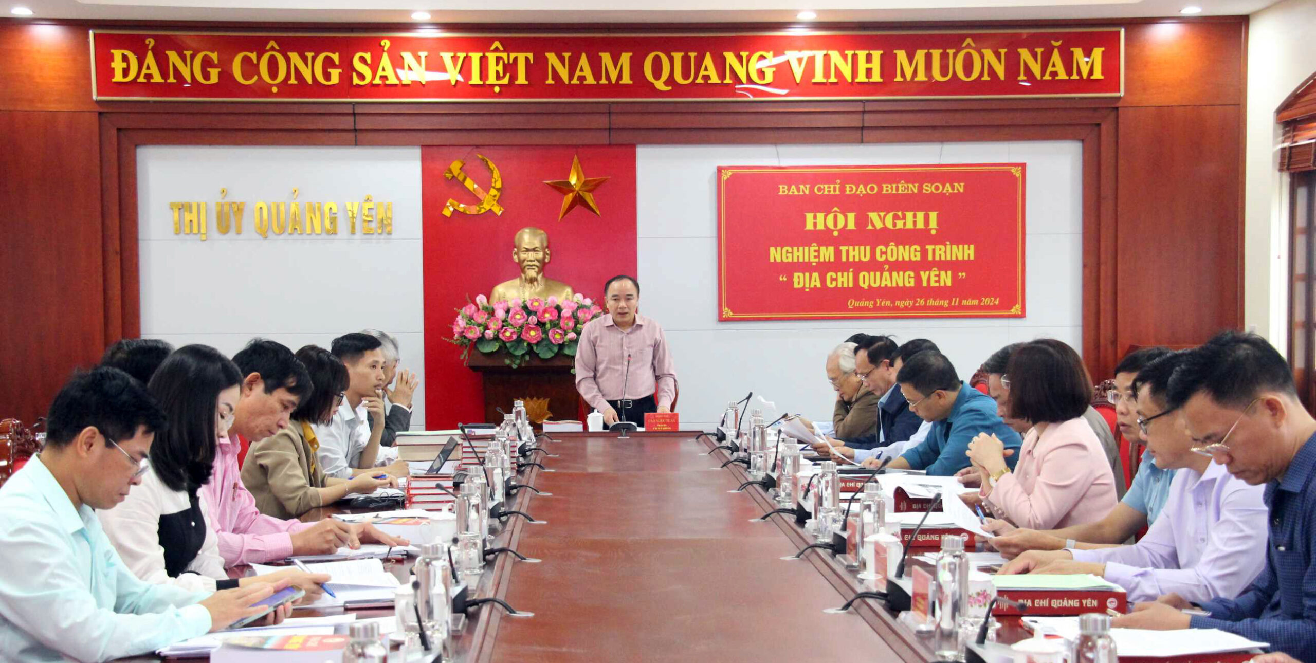 Ngày 26/11, Ban Chỉ đạo biên soạn địa chí Quảng Yên đã tổ chức hội nghị nghiệm thu công trình “Địa chí Quảng Yên”. Đồng chí Cao Ngọc Tuấn, Tỉnh ủy viên, Bí thư Thị ủy chủ trì. Cùng dự có các đồng chí: Đỗ Xuân Điệp, Phó bí thư Thường trực Thị ủy; Trần Đức Thắng, Phó Bí thư Thị ủy, Chủ tịch UBND thị xã; Lưu Thanh Phương, Chủ tịch HĐND thị xã; Lãnh đạo các Ban Xây dựng Đảng. Dự hội nghị còn có các đồng chí nguyên lãnh đạo thị xã qua các thời kỳ.