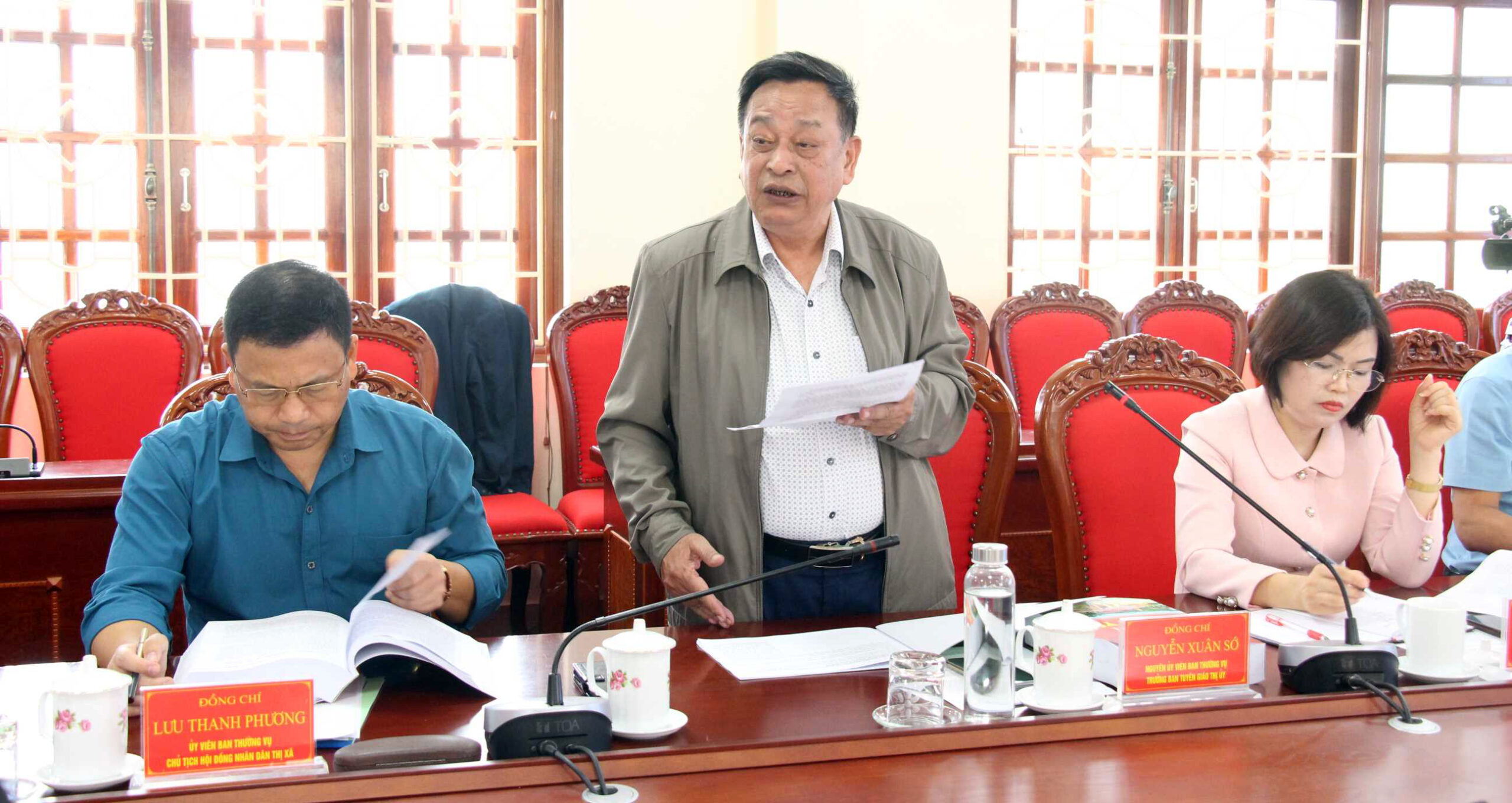 Đồng chí Nguyễn Xuân Sớ – Nguyên Trưởng Ban Tuyên giáo Thị ủy tham gia ý kiến tại hội nghị