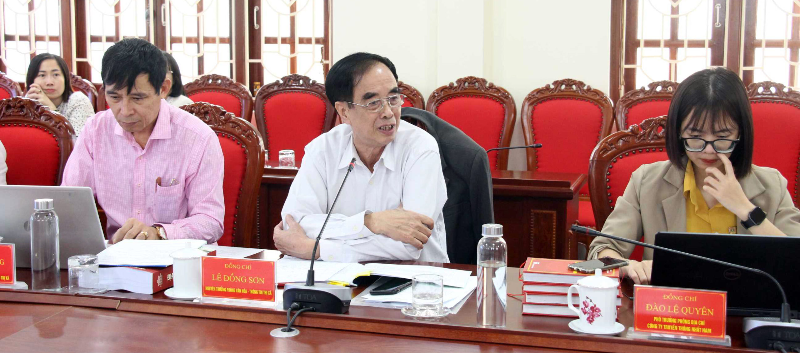 Đồng chí Lê Đồng Sơn – Nguyên Trưởng phòng Văn hóa – Thông tin thị xã tham gia ý kiến tại hội nghị